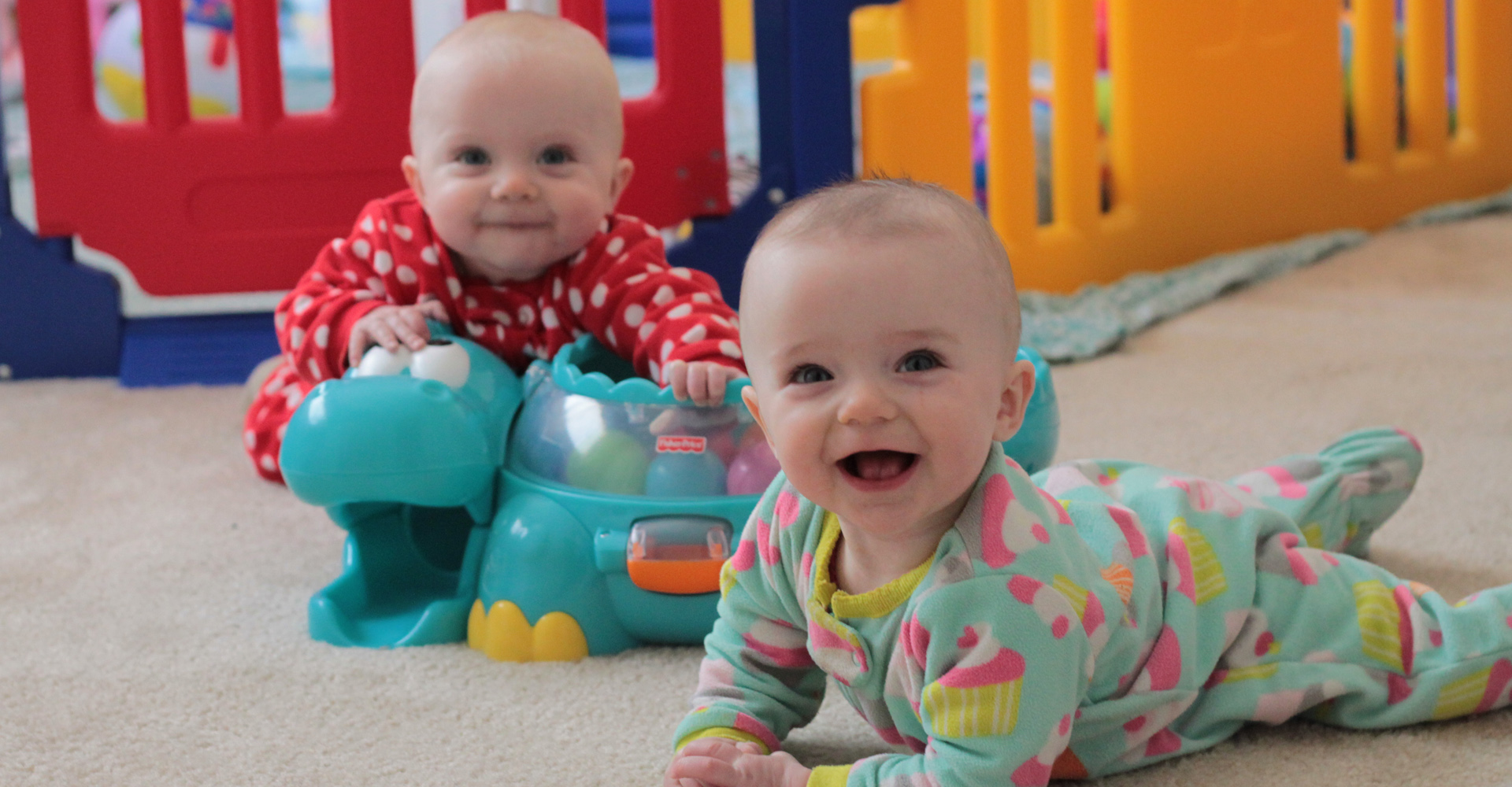 After much discussion, and trial and error, we moved you two to a big girl stroller! It’s so fun seeing you two sit up on your own, but we still gotta watch Gwen from leaning over and trying to grab stuff!