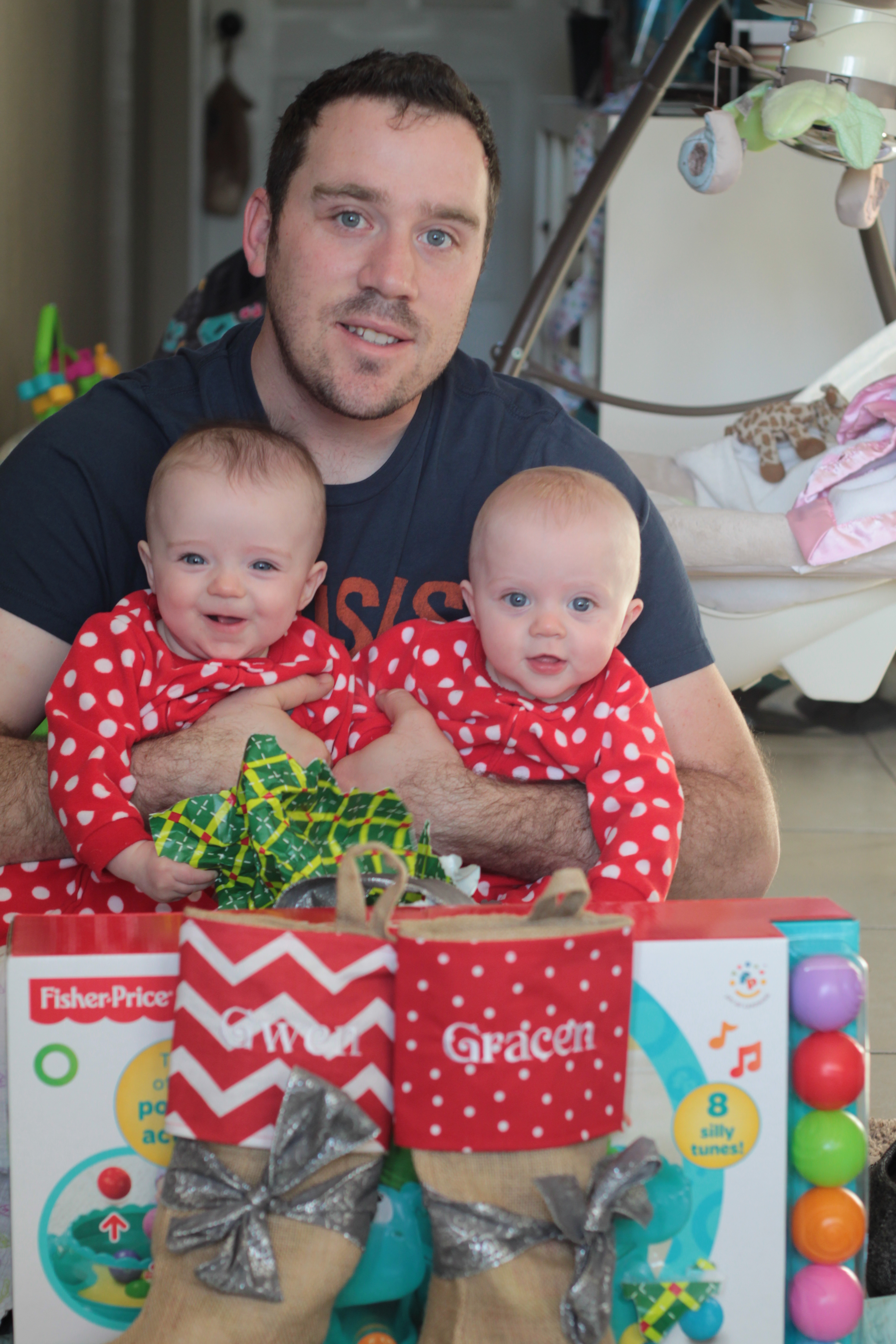 Best Christmas ever! Usually, your mom and I would lazily spend the morning together, and then stroll to family’s houses. This time, it was completely better! We woke you up, and had a few presents for you two. Your mom got you both personalized stockings, Gracen was all about climbing the presents, while Gwen loved ripping them up. We got you a blue plastic ball-bouncing hippo that you both love. We then went to my side of the family’s house, and you got to meet your Aunt Jessica and Cousin Kamylle! We hung out and had lunch, then made the trek to mommy’s side of the family’s house. Nannie and grampy spoiled you two with all kinds of presents! You got to hang out with Evan and Luke, and we all enjoyed dinner. We were so exhausted after this day, but loved spending it so much with you two!