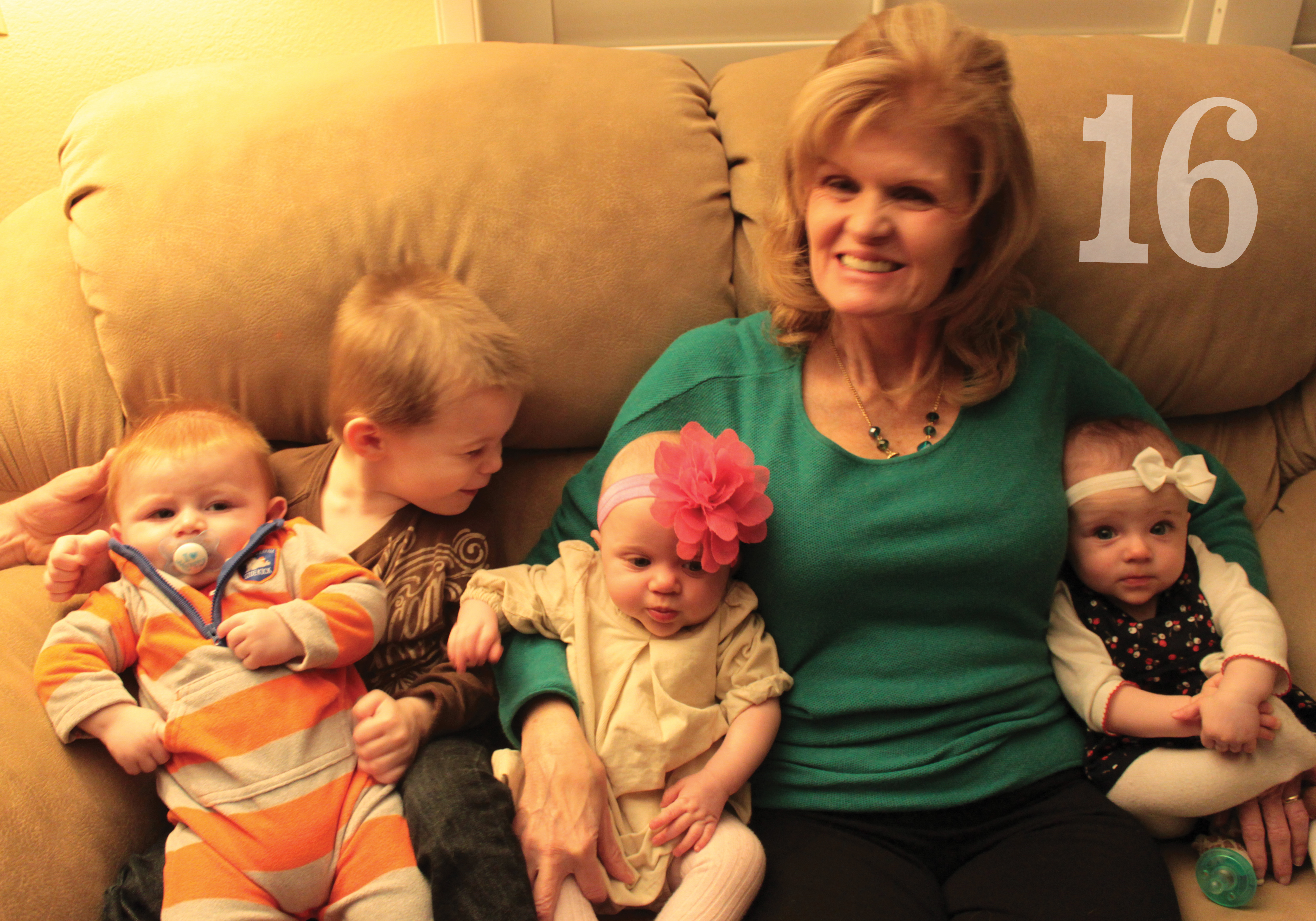 SIXTEEN: Happy birthday Nanny! We went over to grandma’s house, and hung out with the cousins. It was so cool getting a picture with all four of you and Nanny!