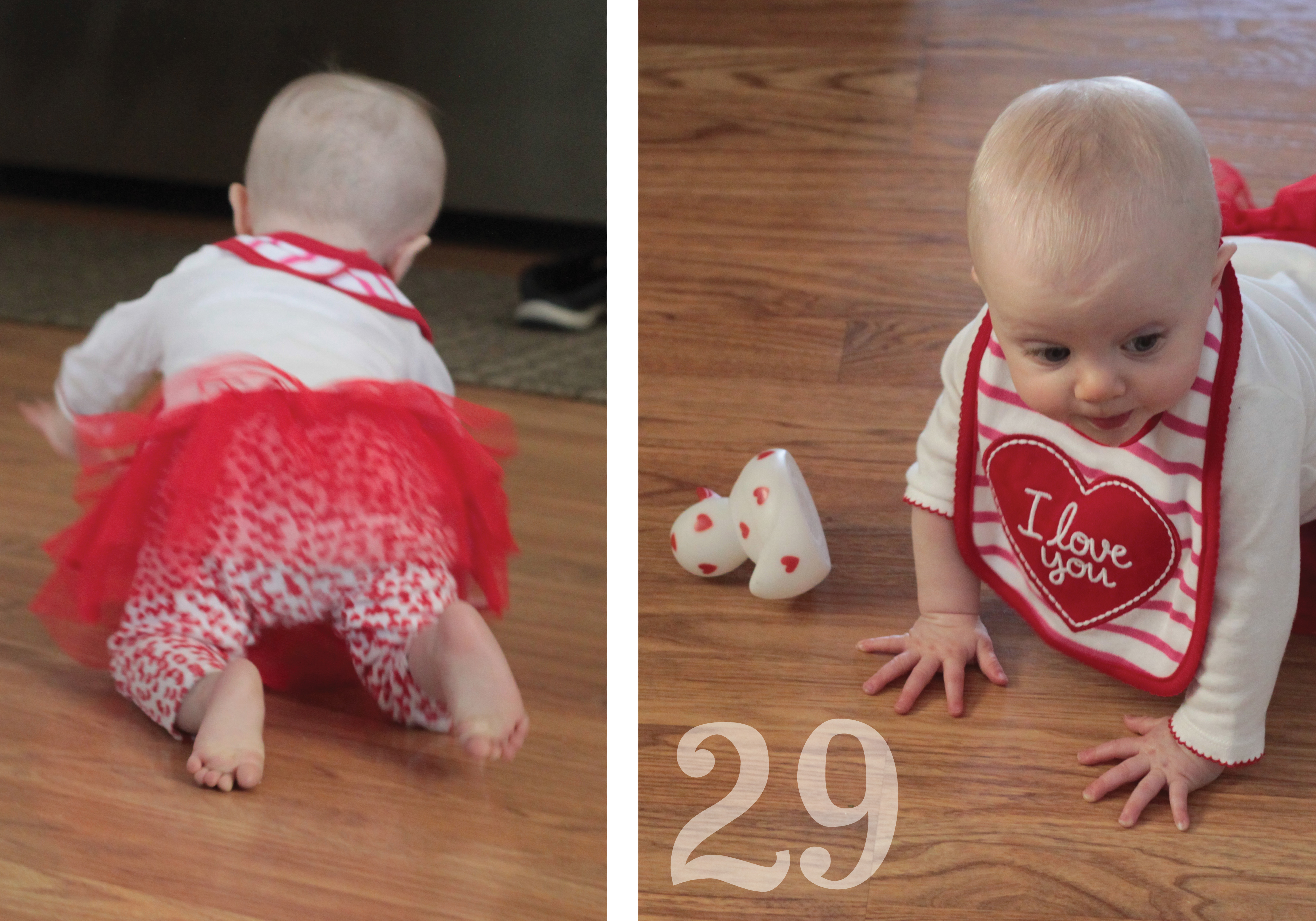 TWENTYEIGHT: While daddy was in Mexico, mommy and nanny hosted the first annual Valentine’s Day Baby Crawl! Gwen 1, Gracen 0…but there’s awlays next year. Go get her Gracen.