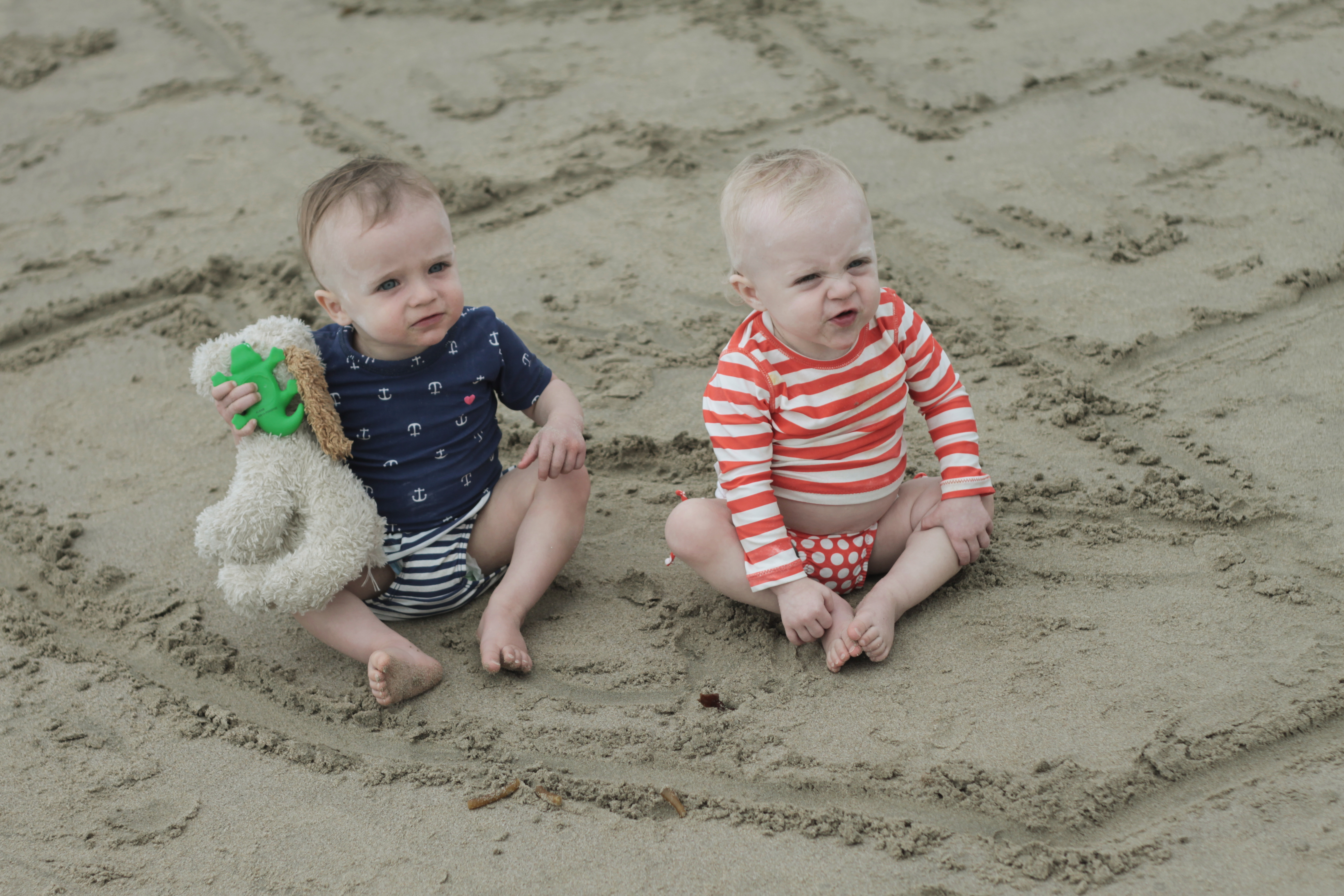 GWEN: You LOVE the ocean. You get that from your mom. She loves it too. You were caught eating toilet paper this month (not used TP thank goodness). You love to wave at strangers, and love chasing the older kids when we’re at get-togethers. You’re very curious, and you may or may not have a hoarding issue developing. You’ll hold every toy ever made if you had the hands for it! It’s super cute…for now. You and your sister also say dog-dog to Toby, Sophie, and your puppy stuffed animals. Speaking of puppy stuffed animals, you lost Dog-Dog (mommy’s old animal from her childhood). But we found a lamb (affectionately known as Mimi), and all is good in the stuffed animal world.