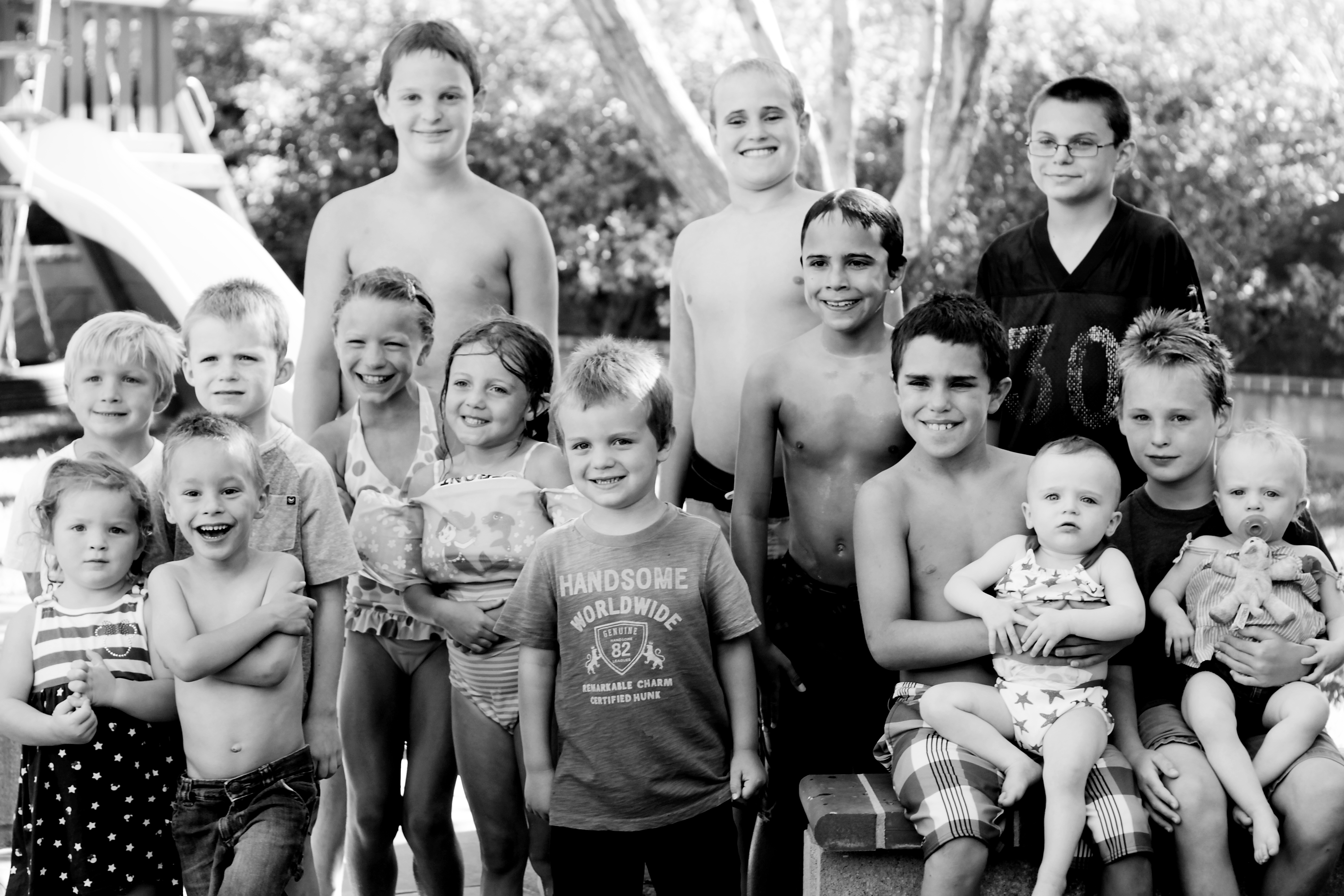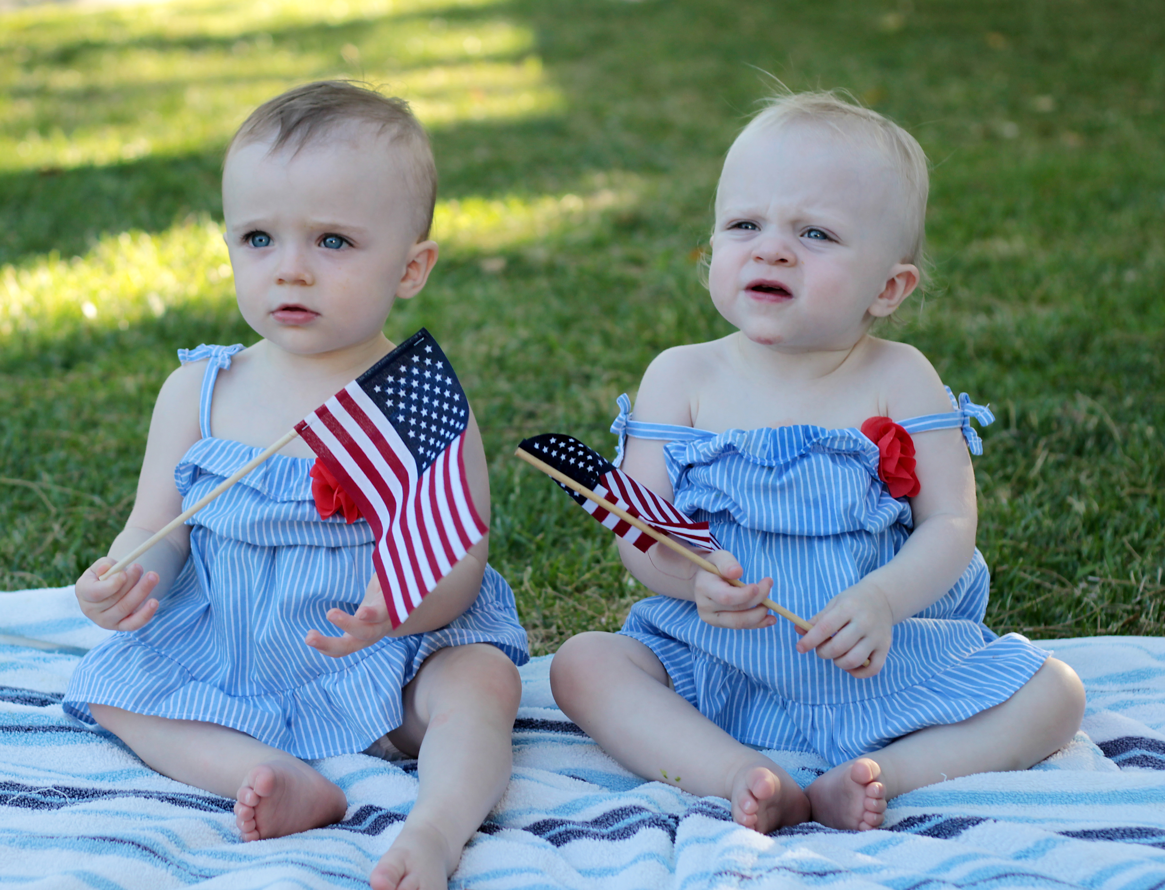 The Hartley Four sure love summer! What a convivial summer! We’ve been to the mountains, a lake, numerous beaches, and bunches of backyard barbecues. At 15 months, you two have sure learned a ton in such a short amount of time. Gone are the babies we knew, and here are the pre-toddlers, full of penguin-style walking, oopses, getting into mischief, and whole new reasons to giggle. It seems like you two will laugh at anything I do. I put a rubber ducky on my head, you laugh. I throw a ball, you laugh. I jump, you laugh. And I cherish this so much, because I know I won’t always be the source of your laughter, so I’m soaking it in this month. You two have also made your mommy and I laugh this month. Mommy was brave and fed you some messy foods (black beans, and another time, spaghetti). And because mommy loves to take photos, we now have photographic evidences of these messes to show your boyfriends when you turn 5,000 months old. But back to month 15…