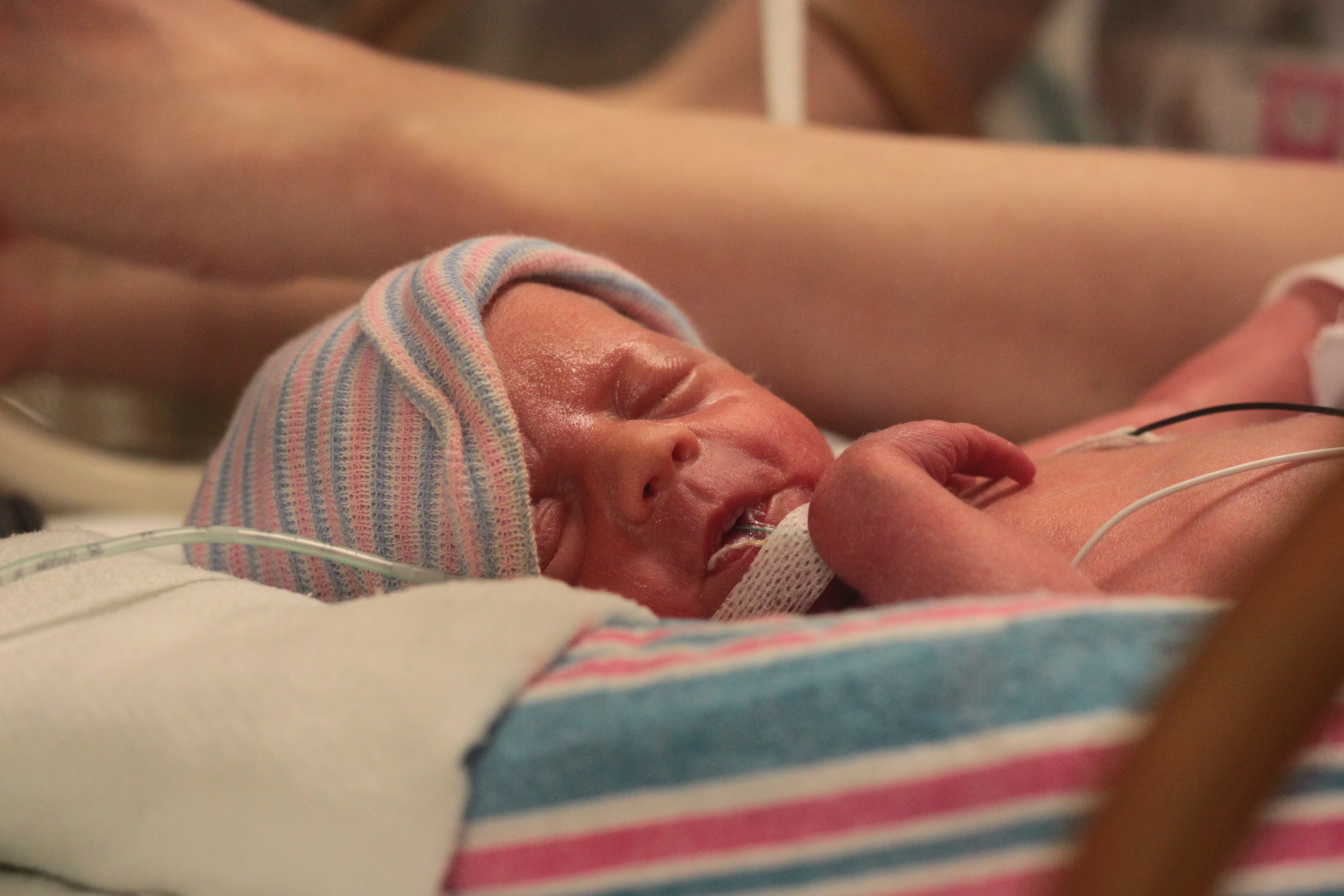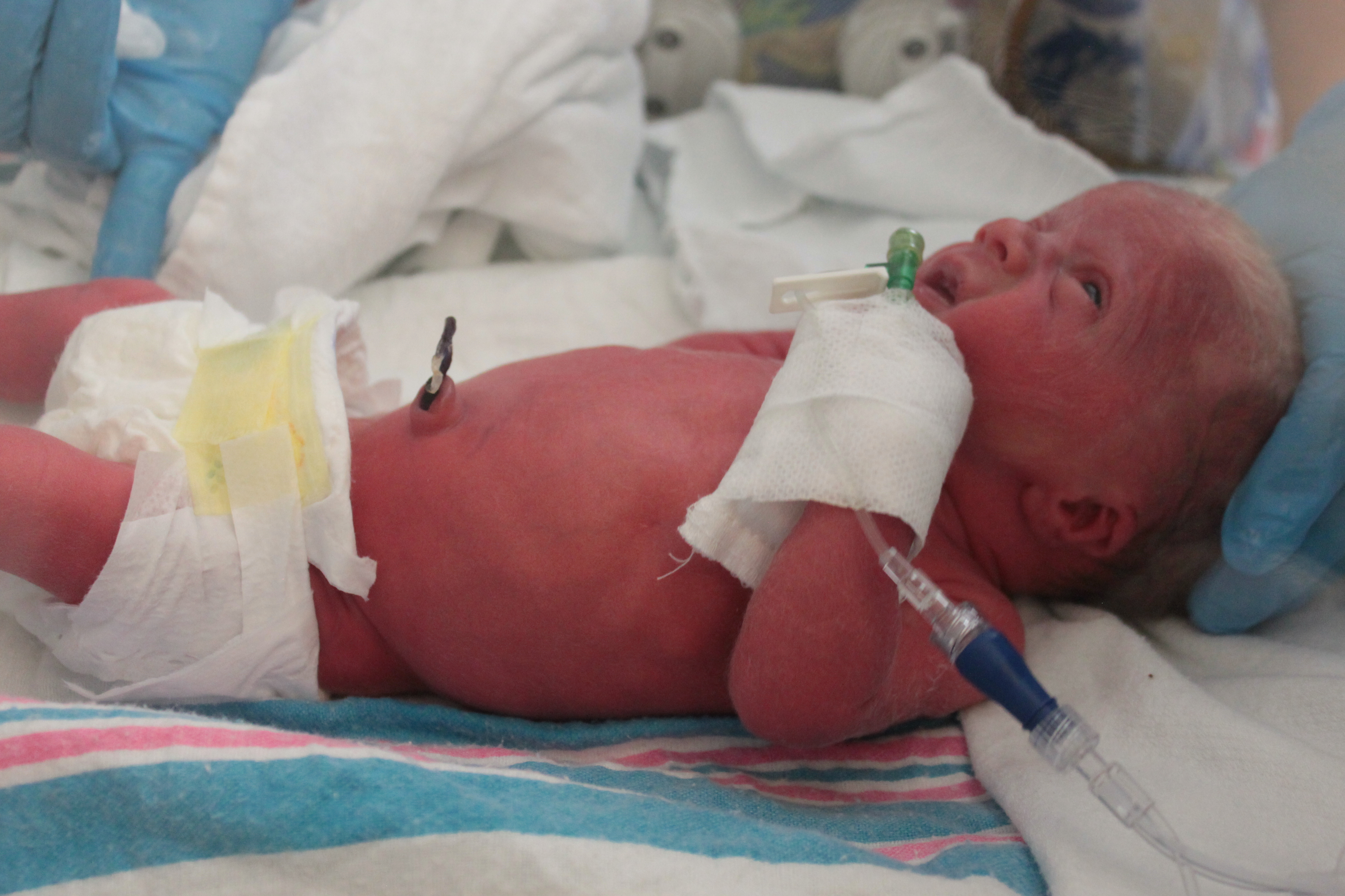 Enter 5:20am, April 17. Noel called Nurse Veronica because she thought she may have pee’d on herself (yea, being pregnant can do that to ya). Veronica came in, and after testing the fluid, said “today’s the day”. That’s when I woke up. I couldn’t comprehend what she was saying. I asked her three different times in five minutes if she was sure. Veronica was so patient with daddy, but you can tell she knew what she was doing. Oh yea! This is where a huge blessing came into play! Gracen, your little bottom helped saved the day here. For a while your foot was in mommy’s cervix, and the doctor’s were concerned that when mommy’s water broke, your ambilical cord would come out with it. If that were to happen, we’d have a five minute timeline to get you out. That scared us so much. Daddy even slept with gloves next to his side so that I could keep that cord in there if needed (don’t worry, the nurses trained me). I’m like a pro when it comes to nursing now.